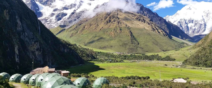 Recojo de cusco de 5:00 a 5:30 am desde su hotel para llevar a los pasajeros a Mollepata para hacer una parada para el desayuno luego una hora más en carro a Soraypampa donde se inicia la caminata por 2 horas hacia la laguna Humantay una vez llegado al lago tiempo libre para visitar el lugar fotografiar y explorar el lugar, luego se desciende por 2 horas hacia el campamento de Quiswarniyoc para disfrutar de un almuerzo nutritivo luego siesta y por la tarde se hace una caminata al mirador de Salkantay desde donde podrá apreciar el atardecer luego de vuelta al campamento le ofreceremos el y la cena y pasara la noche en el MOUNTAIN SKY HUT, campamento exclusivo.