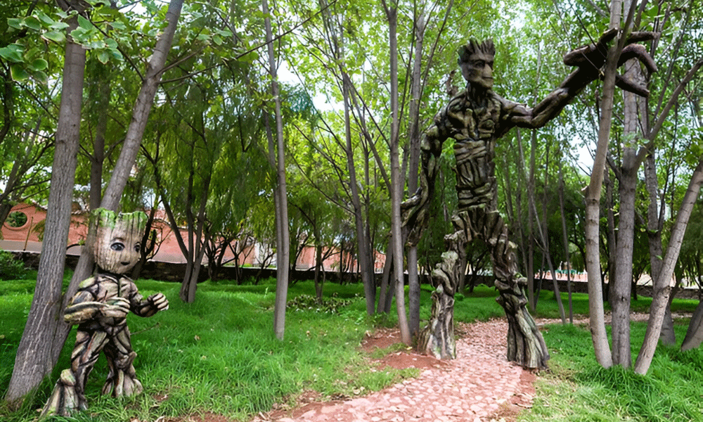 Lo más llamativo del lugar es el famoso Bosque de los Ents, donde esculturas de madera inspiradas en el universo de Tolkien cobran vida.
